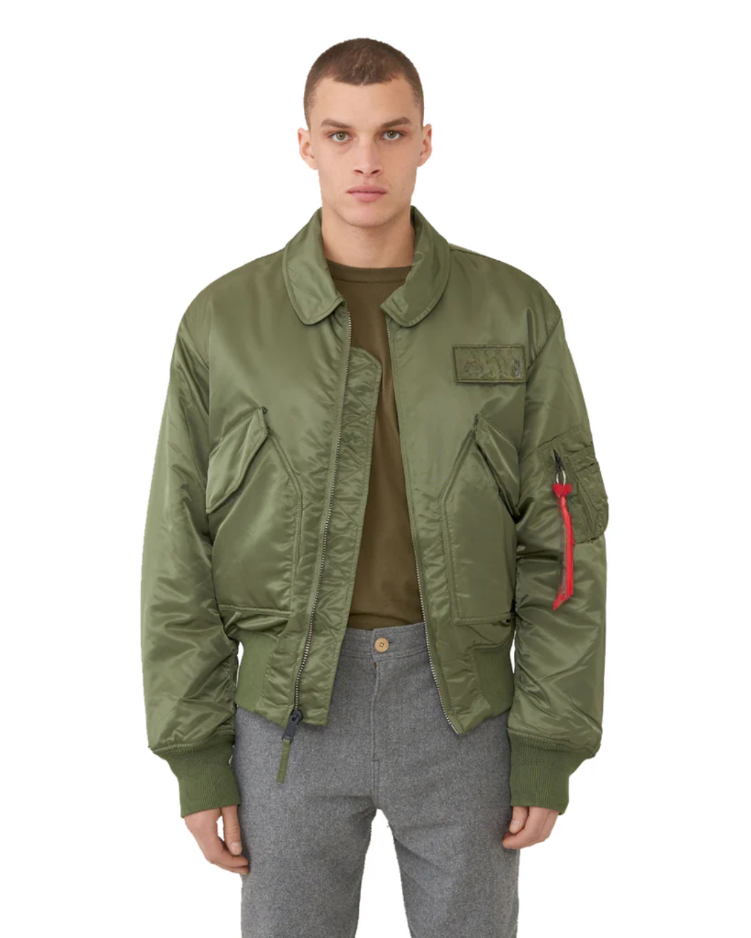 A ruhadarab tartalmaz egy jellegzetes, funkcionális zsebet az ujján, figyelemfelkeltő fém kiegészítőkkel (hardware). Ezenkívül levehető díszítő folt található a mellkason és egy kis textil kulcstartó az urbánus stílusért.