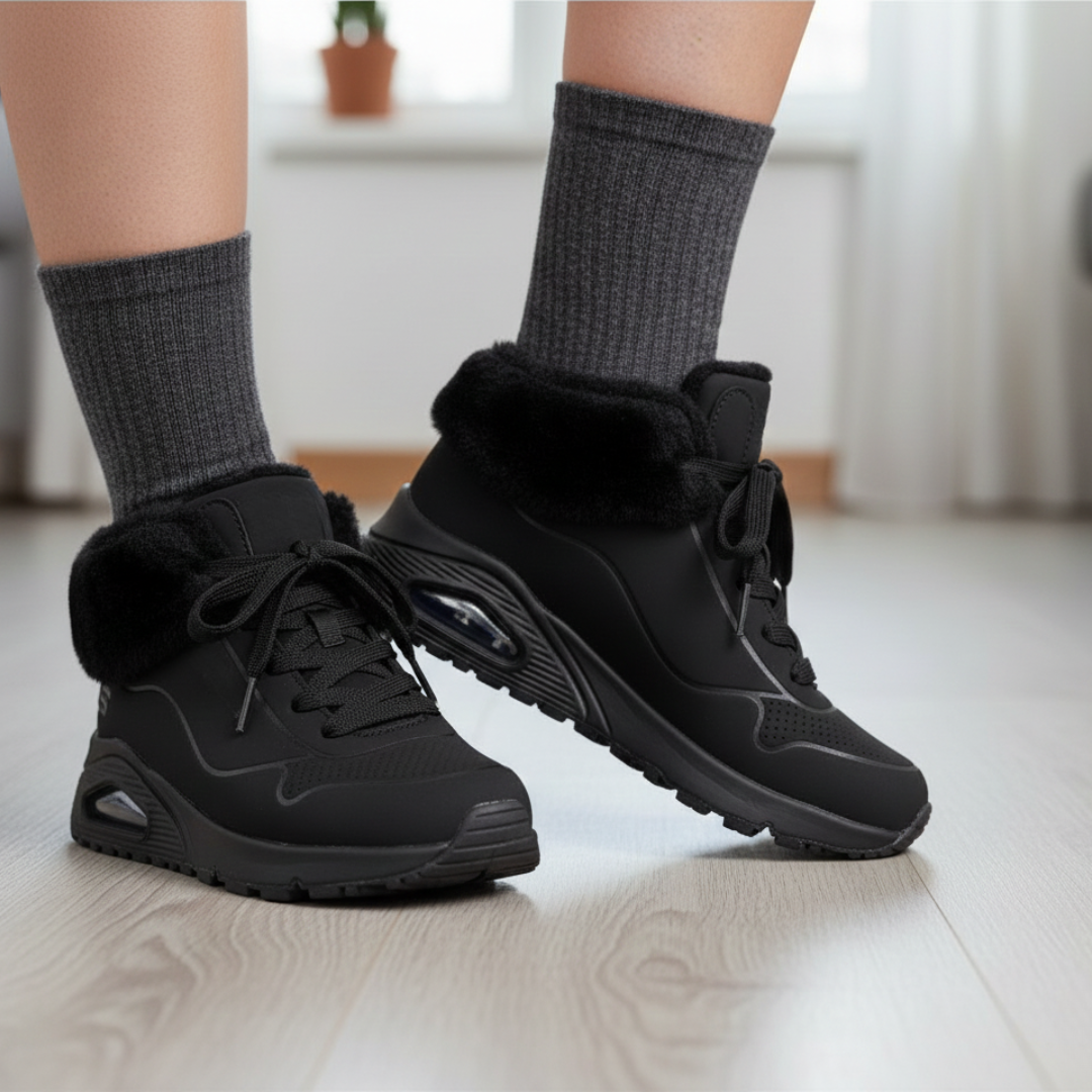 Magas szárú csizma elegáns kivitelben, teljes bokatámasztással. A könnyű és rugalmas talp minden lépésnél kényelmet biztosít. Ideális mindennapi viselethez, irodába vagy alkalmi programokra.