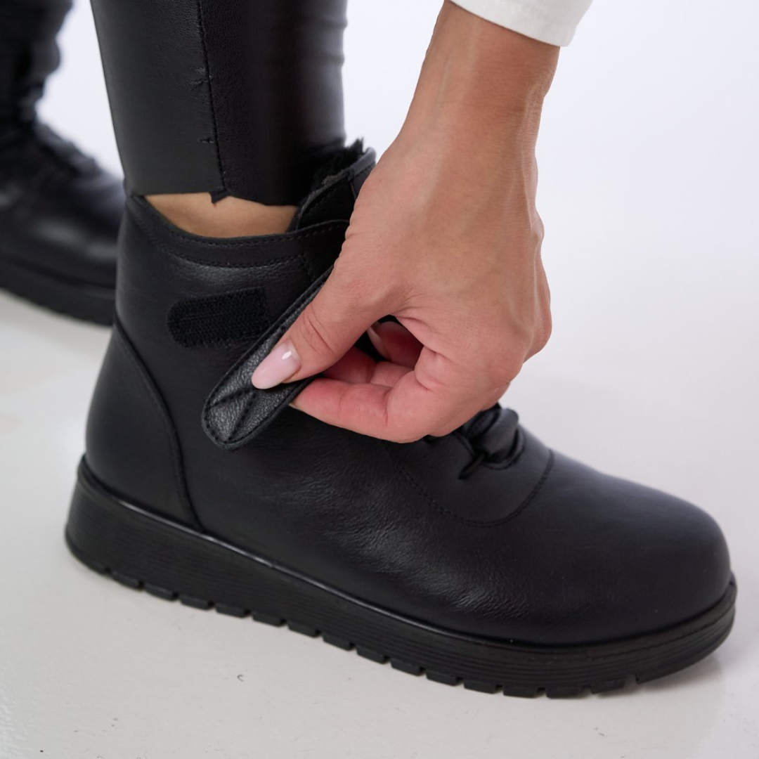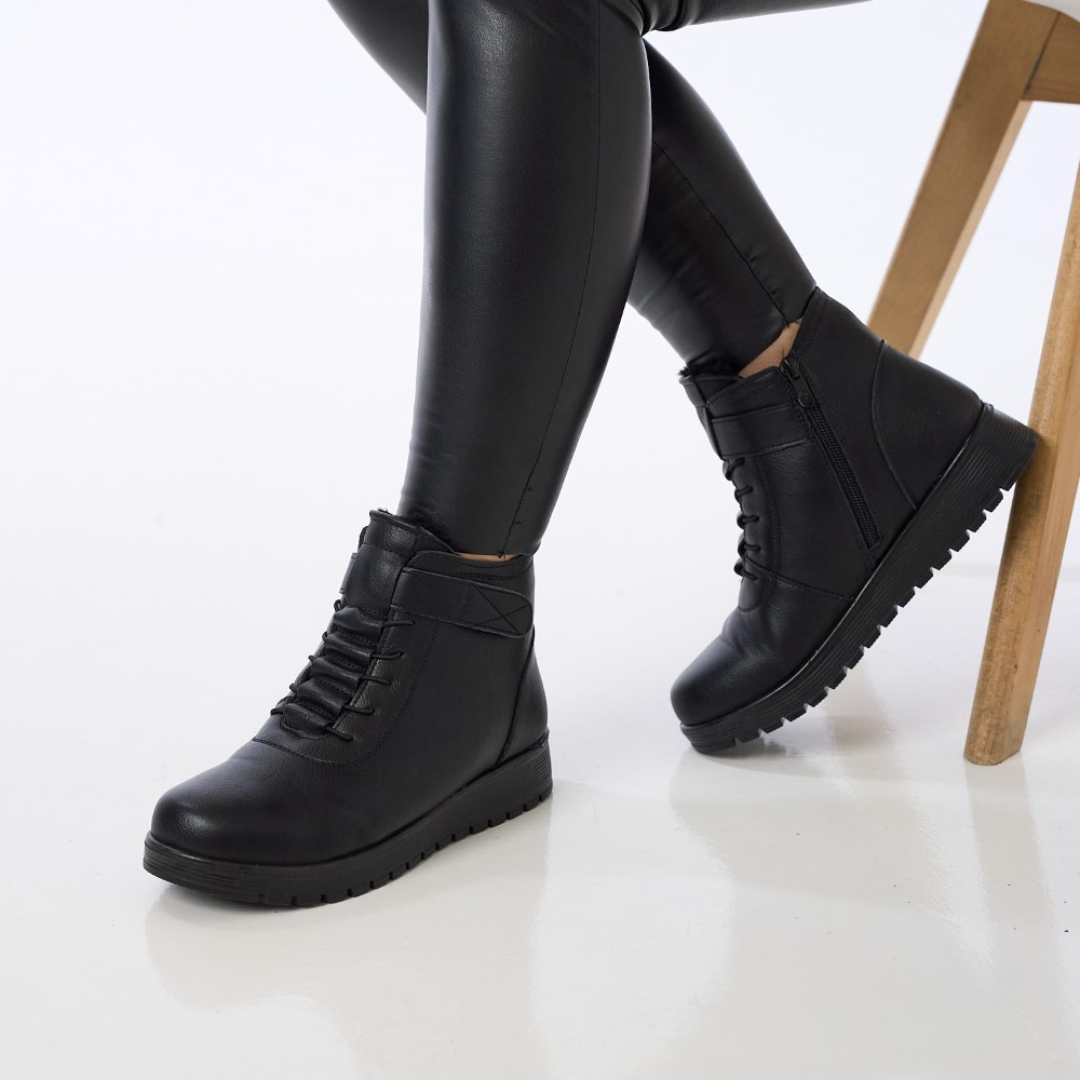 A talp rendkívül rugalmasra van tervezve, alkalmazkodik a láb természetes mozgásaihoz, és kiváló párnázást biztosít minden lépésnél. Megerősített varrása kiváló ellenállást garantál, biztosítva, hogy ez a bokacsizma tartós társ legyen a hideg évszakban.