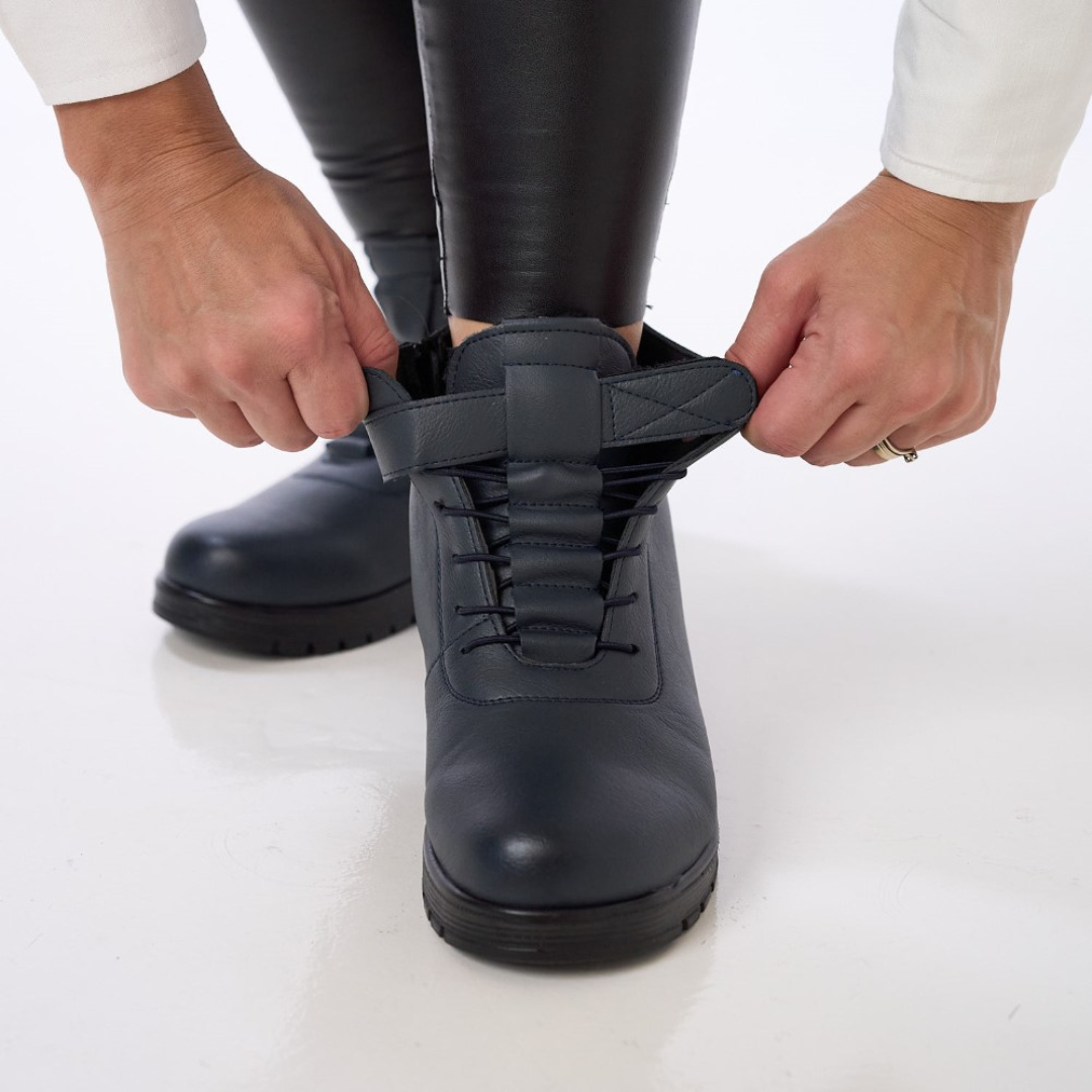 Ez a csizma oldalsó cipzárral rendelkezik, amely lehetővé teszi a gyors fel- és levételt, értékes időt takarítva meg. Az elülső elasztikus rész nagy rugalmasságot biztosít, tökéletesen alkalmazkodva a lábhoz, még akkor is, ha az megduzzad. Ezenkívül ez a modell állítható tépőzáras pánttal van ellátva a tökéletes illeszkedés érdekében, ezáltal garantálva a folyamatos kényelmet egész nap.